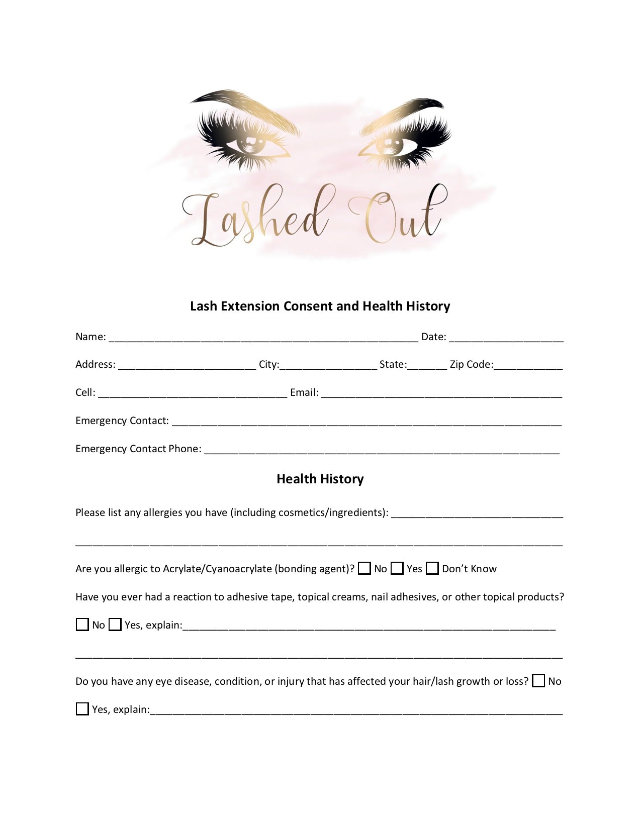 Editable, detailed 3 page consent form for lash extensions